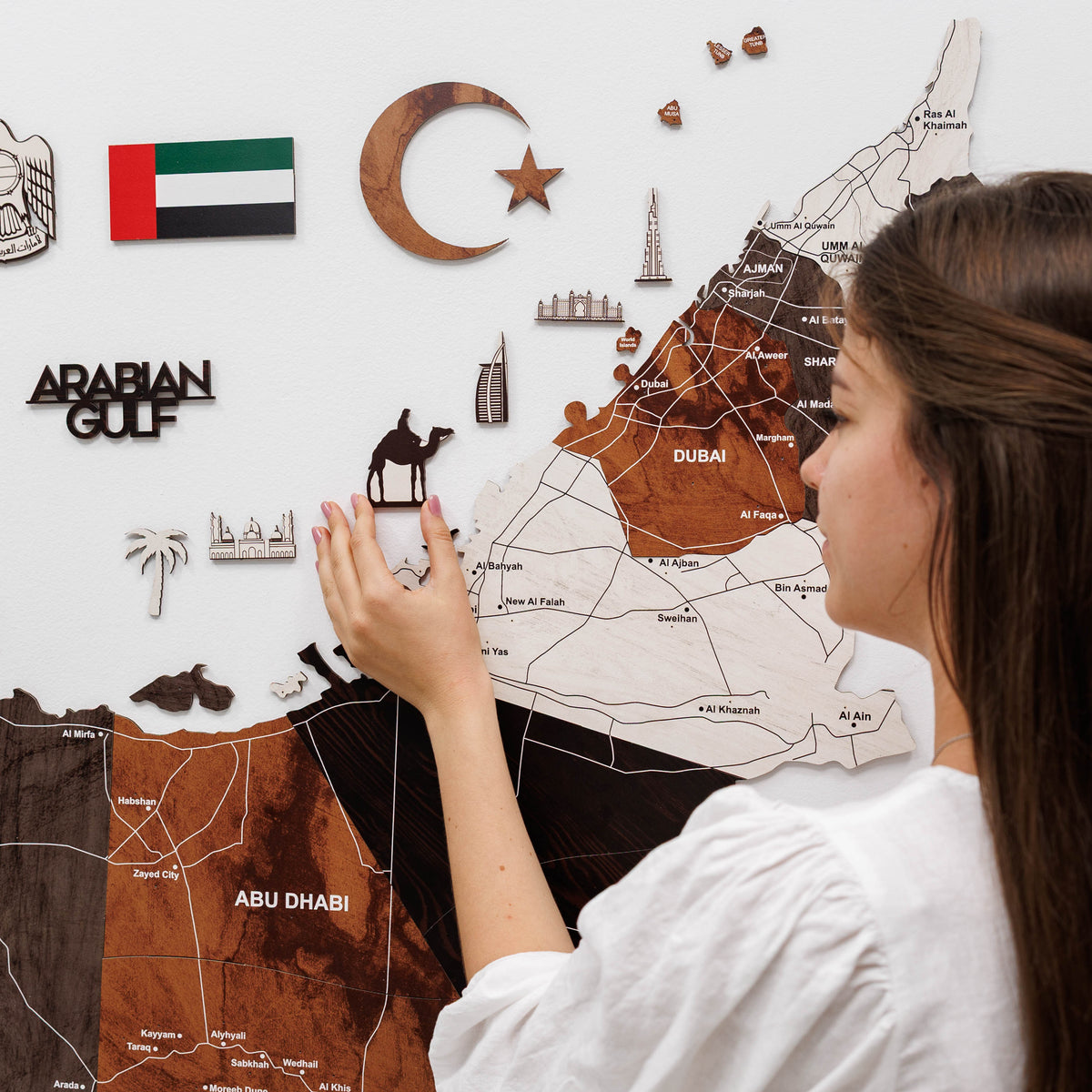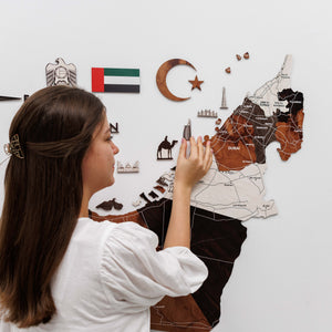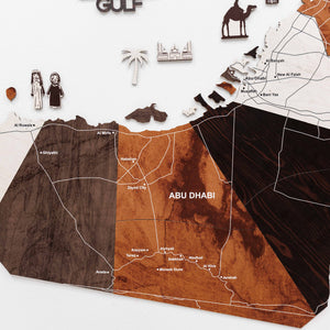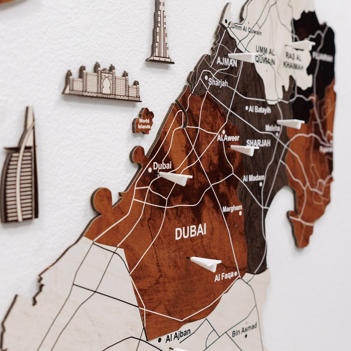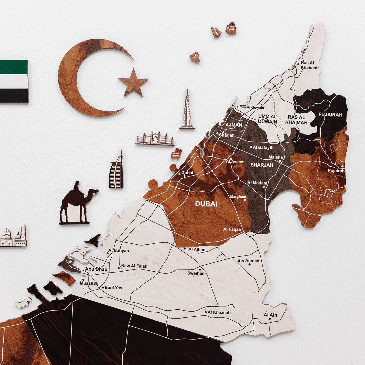 Please Note: This map is designed for decorative purposes and may not provide precise geographical accuracy of the UAE. Each map is a unique masterpiece, showcasing natural variations in wood grain and color that enhance its character and individuality 🌲.