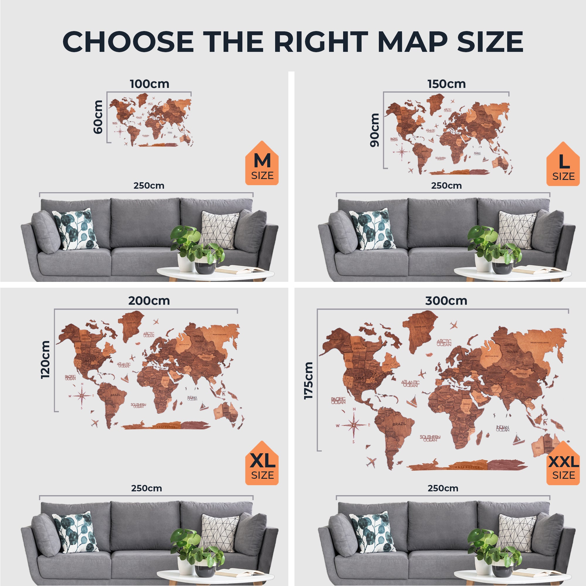 Installing your 3D Wooden World Map - Oak is straightforward with the included tools and clear instructions. Should you prefer professional assistance, our team is available at an extra cost to ensure your art piece is perfectly displayed.