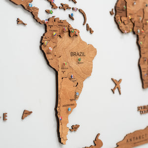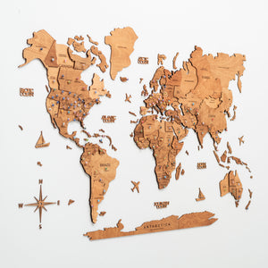 Introducing the 3D Wooden World Map - Oak, a unique gift idea for any occasion, an elegant wall decor, or a creative travel planner that adds a timeless touch of sophistication to your home or office.