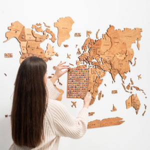 The Oak series showcases a deep, rich wood finish, creating a one-of-a-kind work of art. Each map is unique, with varying shades that reflect the beauty of natural wood. Personalize your map by adding photos from your travels and tiny flag pins to highlight your favorite destinations.