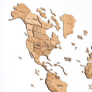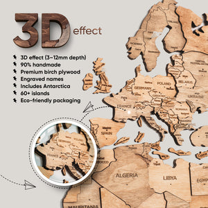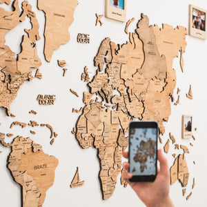 Introducing the 3D Wooden World Map - Light, a unique gift idea for any occasion, an elegant wall decor, or a creative travel planner that adds a bright touch of inspiration to your home or office.
