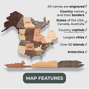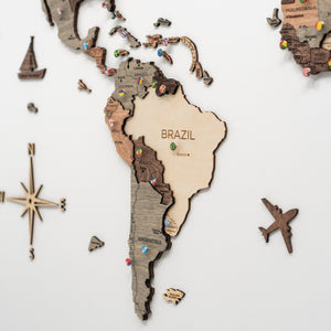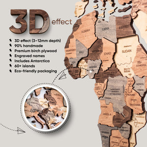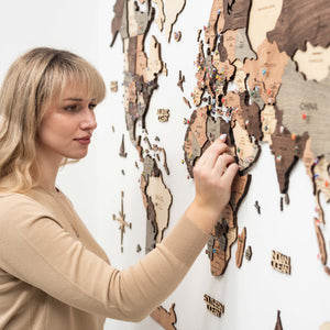 Introducing the 3D Wooden World Map - Smokey, a unique gift idea for any occasion, an exceptional wall decor, or a creative travel planner that beautifully transforms your environment into a tribute to adventure and exploration.