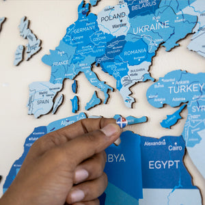 How to make your room look its best with a single piece of décor? Easily with our 2D world map on the wall! The item from the Mystery collection has a neutral palette. The mix of beige, dark-turquoise, gray, and white colors plays well with any interior – from industrial and rustic to transitional and modern.