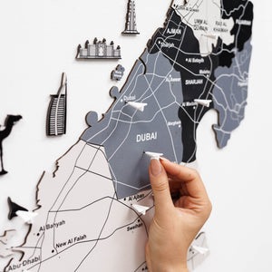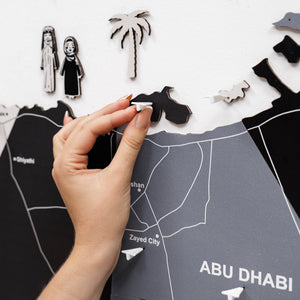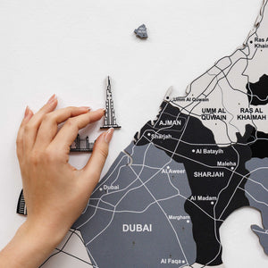 Personalize your map by adding photos of your cherished moments and adventures throughout the UAE. This map serves as a visual reminder of the places you've explored and the memories you've created. For an added touch of personalization, use charming airplane pins to mark your favorite destinations ✈️.