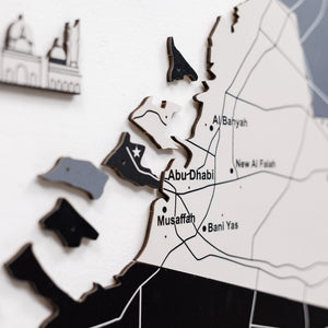 Please Note: This map is designed for decorative purposes and may not provide precise geographical accuracy of the UAE. Each map is a unique masterpiece, showcasing natural variations in wood grain and color that enhance its character and individuality 🌲.