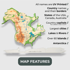 Please note that the map is not a geographical one, and some smaller countries and islands may be omitted. Each Map is unique, and shades may vary because it's made of natural wood.