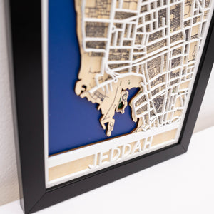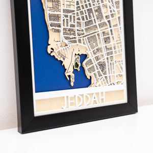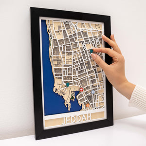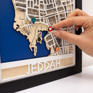 Laser-cut from premium fiberboard and assembled with multiple layers for depth, each map captures the spirit and energy of Saudi Arabia’s gateway to the Red Sea. Whether you call Jeddah home, have visited its historic districts, or wish to gift a piece of the city to a loved one, this map blends craftsmanship, memory, and modern décor into one striking design.