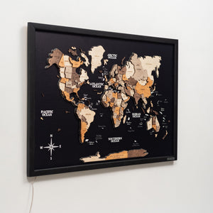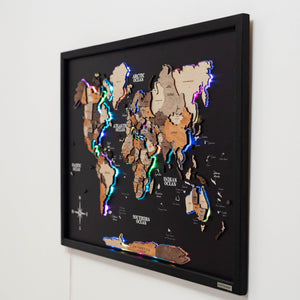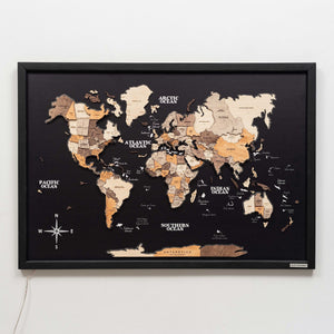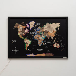 Elevate your space with the bold sophistication of our 3D Wooden LED World Map – Multicolor on Black Frame. The striking black backdrop contrasts beautifully with the vibrant wooden continents, while the integrated LED lighting creates a warm, inviting glow that transforms any wall into a luxurious focal point.
