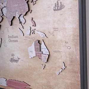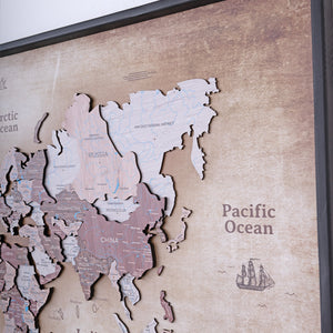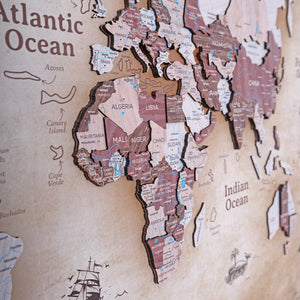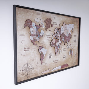 3D Wooden World Map on Panel - Cappuccino Vintage