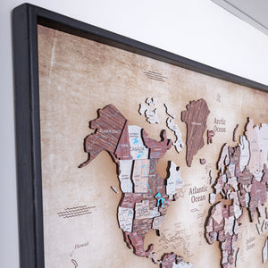 Introduce an exotic vibe into your home with the Enjoy The Wood brand's 3D Wooden World Map in Cappuccino color and vintage background. This eco-friendly map 🌍 is a perfect addition to any living room, bedroom, or office, transforming dull walls into stunning views of far-off lands.