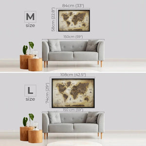 Enhance your map with Flag Push Pins 🏳️ to mark the countries you've visited, adding a personal touch to your decor. This panel map is not only a stunning decoration but also an excellent conversation starter and an opportunity to personalize the color palette of your room.