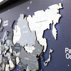 Elevate the aesthetic of your living space with our 3D Wooden World Map in the Nordik color and Space background panel from Enjoy The Wood. This eco-friendly map is the perfect addition to any room, bringing stunning views from faraway lands to life, enlivening even the dullest walls.