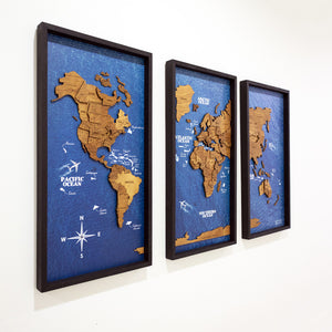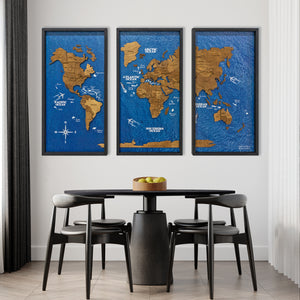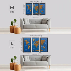 Whether you mount it in an apartment, house, hotel room, or office, this triptych world map enhances the aesthetic of any space. Looking for a thoughtful gift for a birthday, Christmas, Easter, Baby Shower, or any other special occasion? 🎁 Or perhaps your wanderlust soul craves a travel-themed piece of decor? This wall art installation is sure to impress even the most discerning giftees and travel enthusiasts!