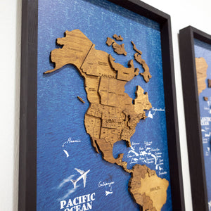 Featured in a stunning 3-panel image, our Wooden World Map serves as a captivating focal point in any room while adding comfort and style. This handcrafted decor element in oak color is the perfect finishing touch for various interior design styles.