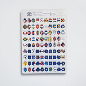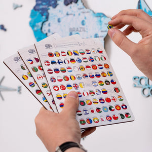Crafted from fiberwood, our flag pins boast precise printing, ensuring vibrant and clear designs. Each set includes 287 flags, encompassing all countries represented on the map, states of the USA, and additional islands.