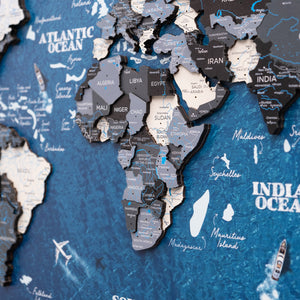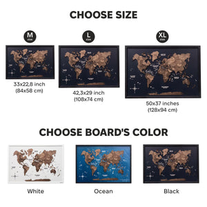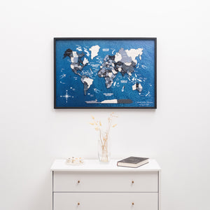 Enhance your map with Flag Push Pins 🏳️ to highlight the countries you've visited, adding a personal touch to your decor. This panel map is not just a stunning decoration; it’s an excellent conversation starter and an opportunity to personalize your room's color palette.