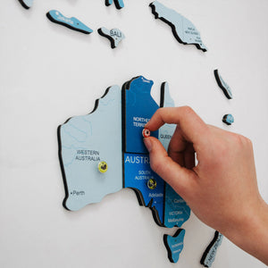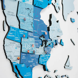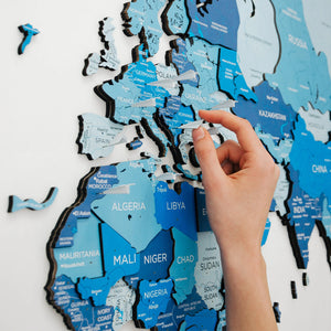 Add some dimension and character to your walls with the Enjoy The Wood 3D Wooden World Map in Azure color!