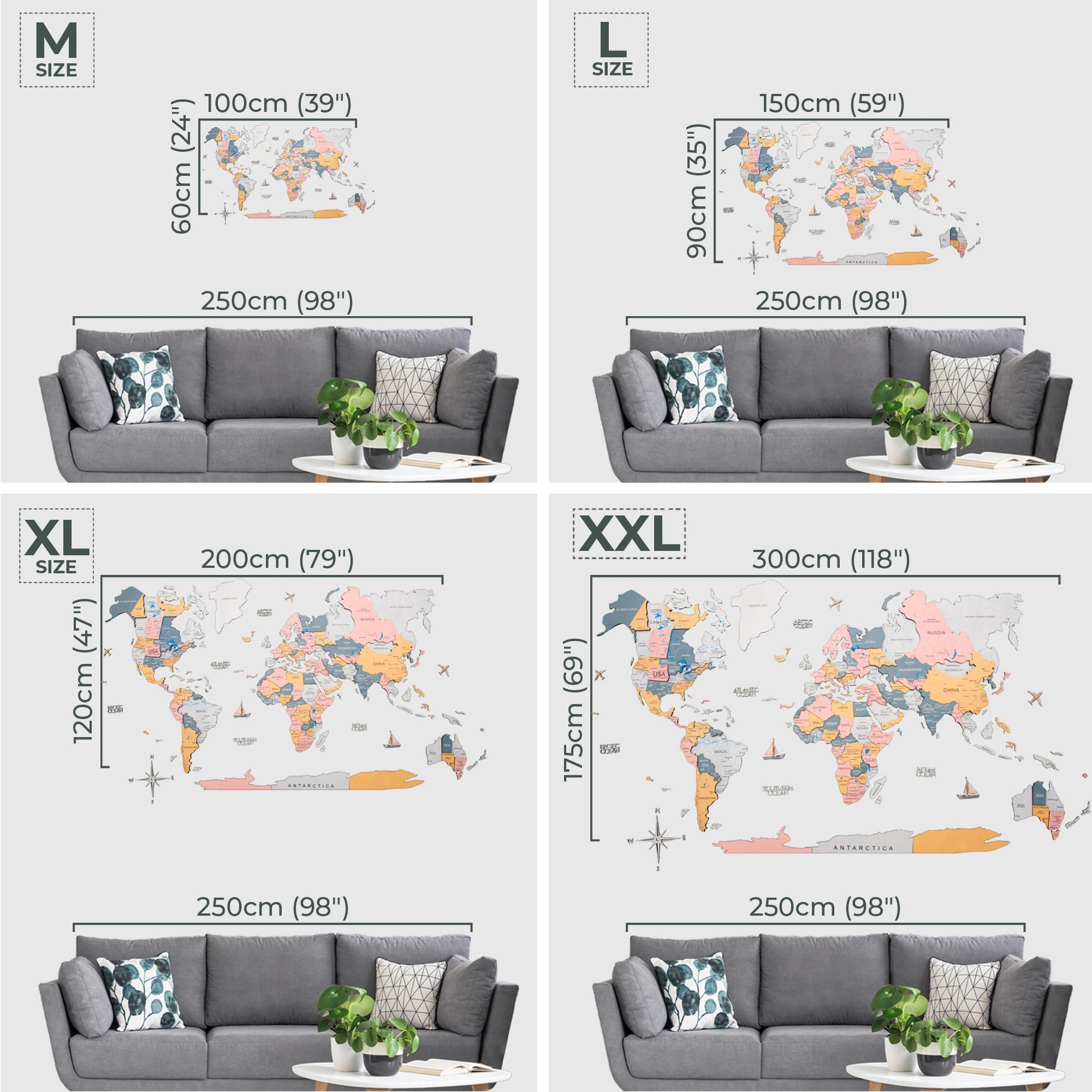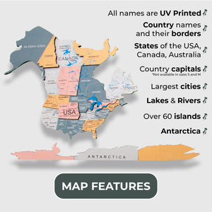 Please note that the map is not a geographical one, and some smaller countries and islands may be omitted. Each Map is unique, and shades may vary because it's made of natural wood.