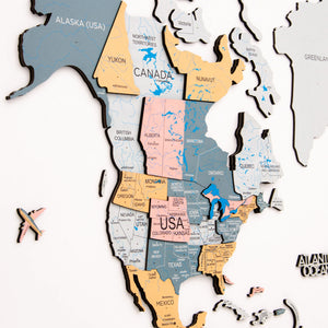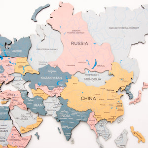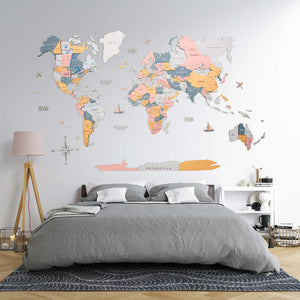 Add some dimension and character to your walls with the Enjoy The Wood 3D Wooden World Map in Festival color!
