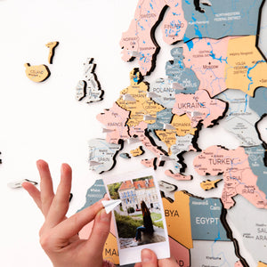 This 3D map allows you to add your personal touch by adding photos of your previous journeys and cute tiny flag pins to pin your memories to the map. The map is perfect for any interior style, including contemporary, industrial, transitional, minimalistic, rustic, or any other style.
