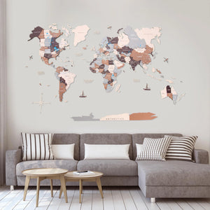 Add some dimension and character to your walls with the Enjoy The Wood 3D Wooden World Map in Suburbs color!