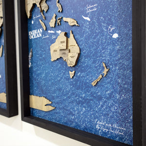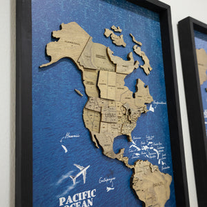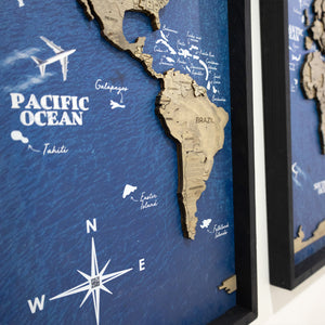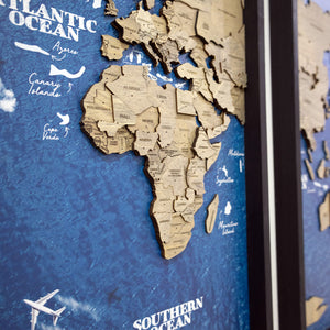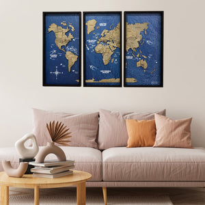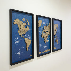 The wood-carved triptych wall art in Terra Ocean Finish is designed to beautifully complement your decor. Whether you want to infuse a strong sense of comfort into the room or showcase your wanderlust spirit, this map will do the job perfectly.