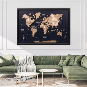 The marvelous color palette – Black, White and Ocean – will make any interior look complete and unique. Whether it’s an industrial, contemporary, modern, minimalist, neutral, or any other interior style, the single panel map will let the world know what you’re passionate about. Traveling!