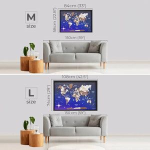 Add Flag push pins to the map to highlight the countries you have visited, adding a personal touch to your home decor.