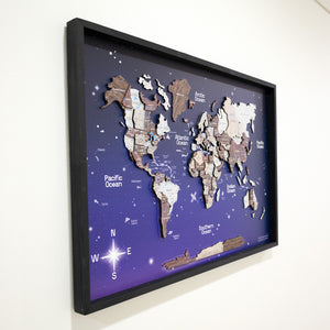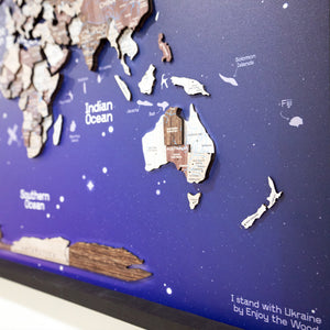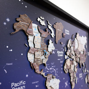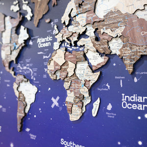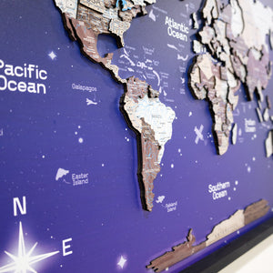 Elevate the look of any room with our wooden world map in the Cappuccino color and Space background from Enjoy The Wood brand. This eco-friendly map is a must-have for any living room, bedroom, or office, providing a touch of sophistication and elegance that can breathe life into even the most lackluster walls.