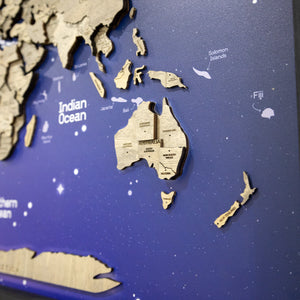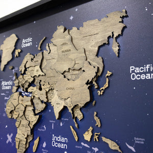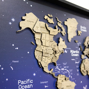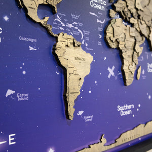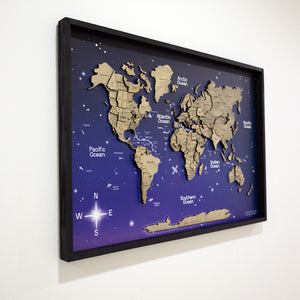 Transform any room into a unique and stunning space with our 3D Wooden World Map in Terra color and a Space background from Enjoy The Wood. This eco-friendly map is the perfect addition to any living room, bedroom, or office, providing breathtaking views from far-away lands that bring life and freshness to even the dullest walls.
