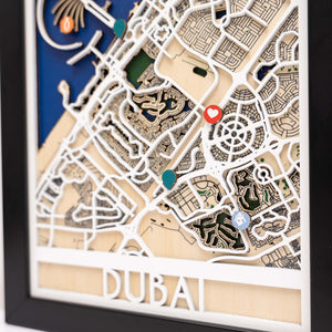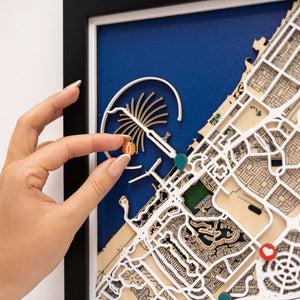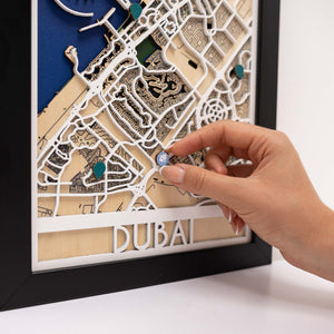 Celebrate the vibrant energy and modern skyline of Dubai with the 3D Wooden City Map – Dubai by Enjoy The Wood. This meticulously handcrafted wooden map transforms the city’s iconic layout — from its coastline and islands to its roads and neighborhoods — into a stunning layered work of art.
