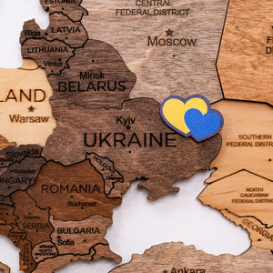 These pins are the ideal accessory for marking your travels on a wooden map. They add a personal touch and a splash of color, allowing you to highlight your Ukrainian roots or the places you've visited in Ukraine.