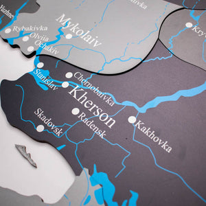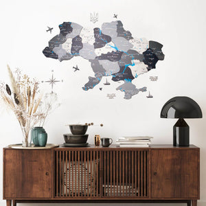 Enhance your home's interior design with the Enjoy The Wood Ukraine wooden map, now available in Nordik color. Made from eco-friendly materials, this 3D map is perfect for travel enthusiasts who want to display their wanderlust in a unique and stylish way. The Nordik color is a beautiful mix of black, blue, white, and grey, making it a versatile addition to any home decor.