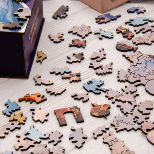 At our core, we're committed to using top-notch materials that guarantee the finest puzzles. Our approach may differ slightly, but generally, we opt for robust, eco-friendly components for the puzzle pieces alongside a resilient backing. As for the adhesive tape, we employ a potent bonding agent to guarantee steadfast hanging. You can be confident that we're dedicated to upholding quality and eco-consciousness in our materials. It's worth noting that our puzzles are lovingly crafted from wood, complemented by prints made with water-resistant paints. This blend ensures both sturdiness and a top-tier appearance for your puzzles.