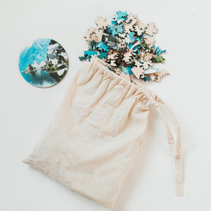 Keep your puzzle pieces organized and secure in a finely crafted cotton bag.