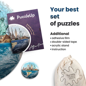 GREAT DECOR PIECE: If you want to use a puzzle as wall decor just glue the sticky tape on the back of the puzzle and hang on the wall or use it as a table decor with our special stand for puzzles.