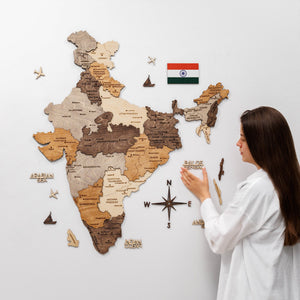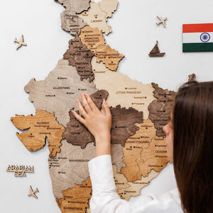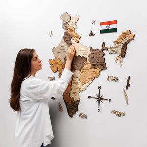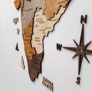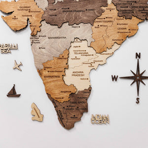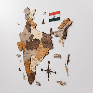 India 3D Wooden Map - Multicolor