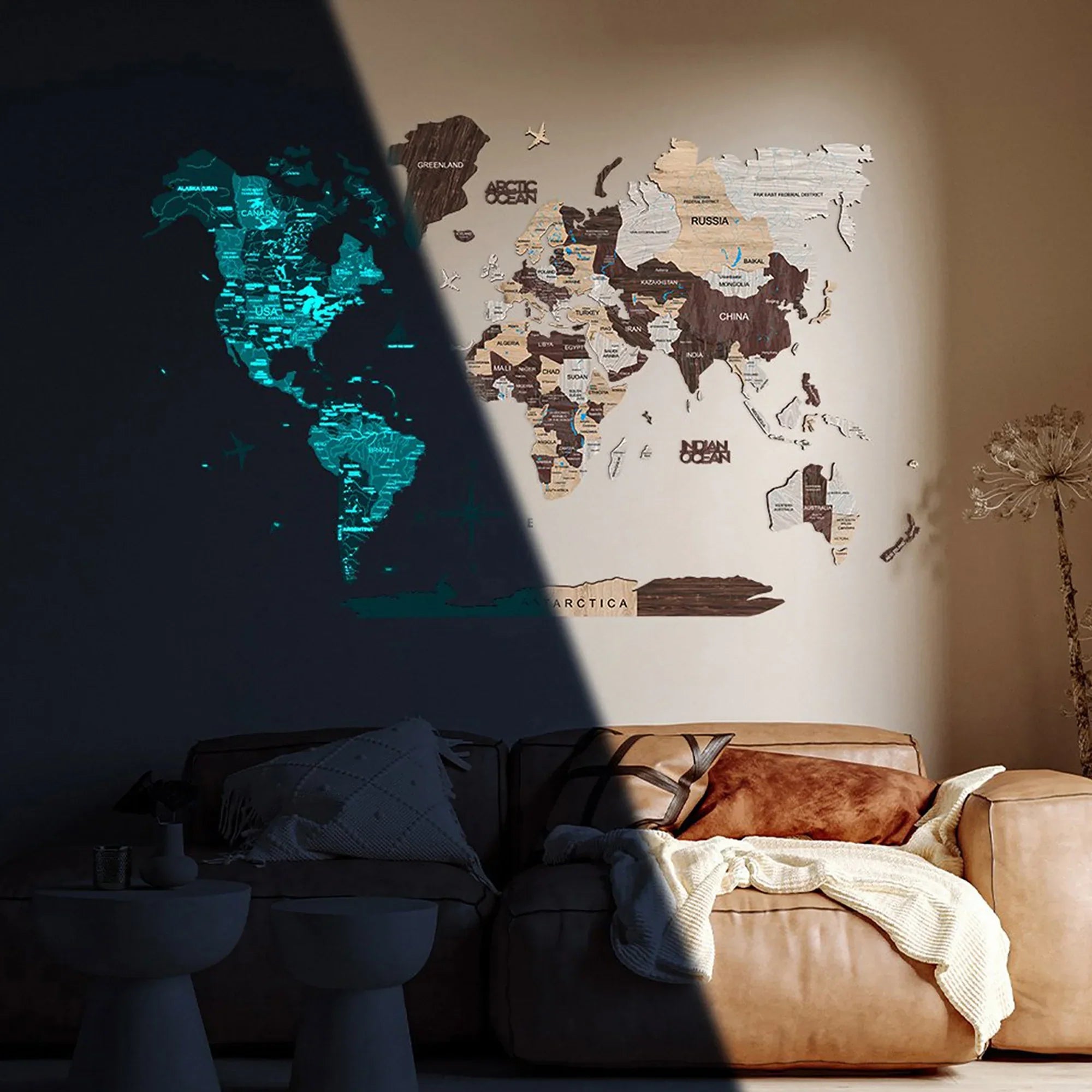 Elevate your home decor with our 3D Luminous Wooden World Map in Cappuccino Finish 🌍✨. This stunning piece not only serves as a captivating focal point in your living space but also glows beautifully in the dark, making it a unique addition to your decor. Whether you're celebrating New Year, Christmas, Ramadan, birthdays, anniversaries, or searching for the perfect gift for a colleague, this map is sure to impress 🎁.