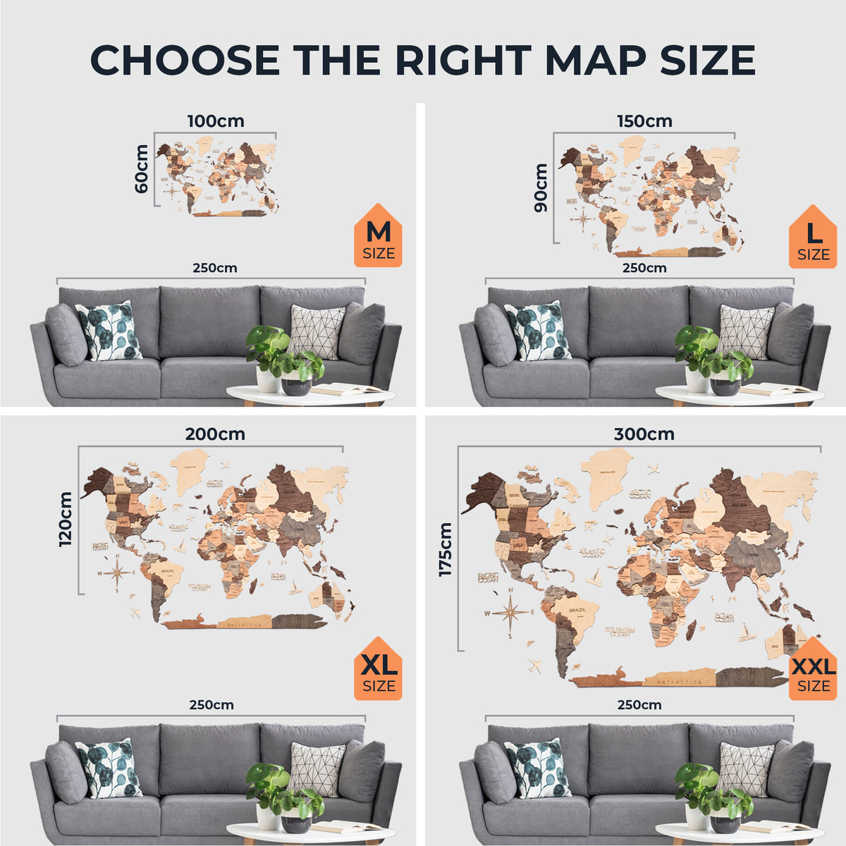 Installing your 3D Wooden World Map - Smokey is straightforward with the included tools and clear instructions. Should you prefer professional assistance, our team is available at an extra cost to ensure your art piece is perfectly displayed.