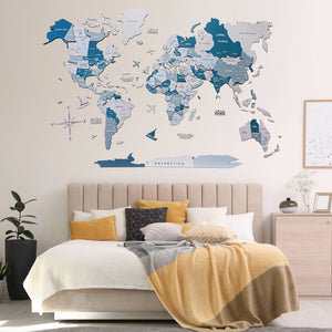Add some dimension and character to your walls with the Enjoy The Wood 3D Wooden World Map in Aqua color!