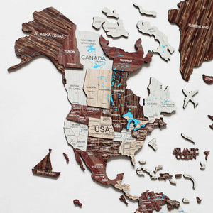 Add some dimension and character to your walls with the Enjoy The Wood 3D Wooden World Map in Cappuccino color!