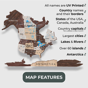 Please note that the map is not a geographical one, and some smaller countries and islands may be omitted. Each Map is unique, and shades may vary because it's made of natural wood.