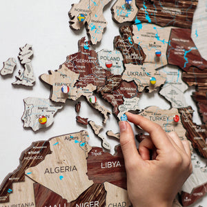 If you're looking to add some warmth and coziness to your home decor, our Cappuccino 3D Wooden World Map is the perfect addition. This map features a delightful mix of warm brown colors in many shades, reminiscent of your favorite cappuccino drink. This unique and eco-friendly map is perfect for adding some character to your walls and showcasing your love for travel.