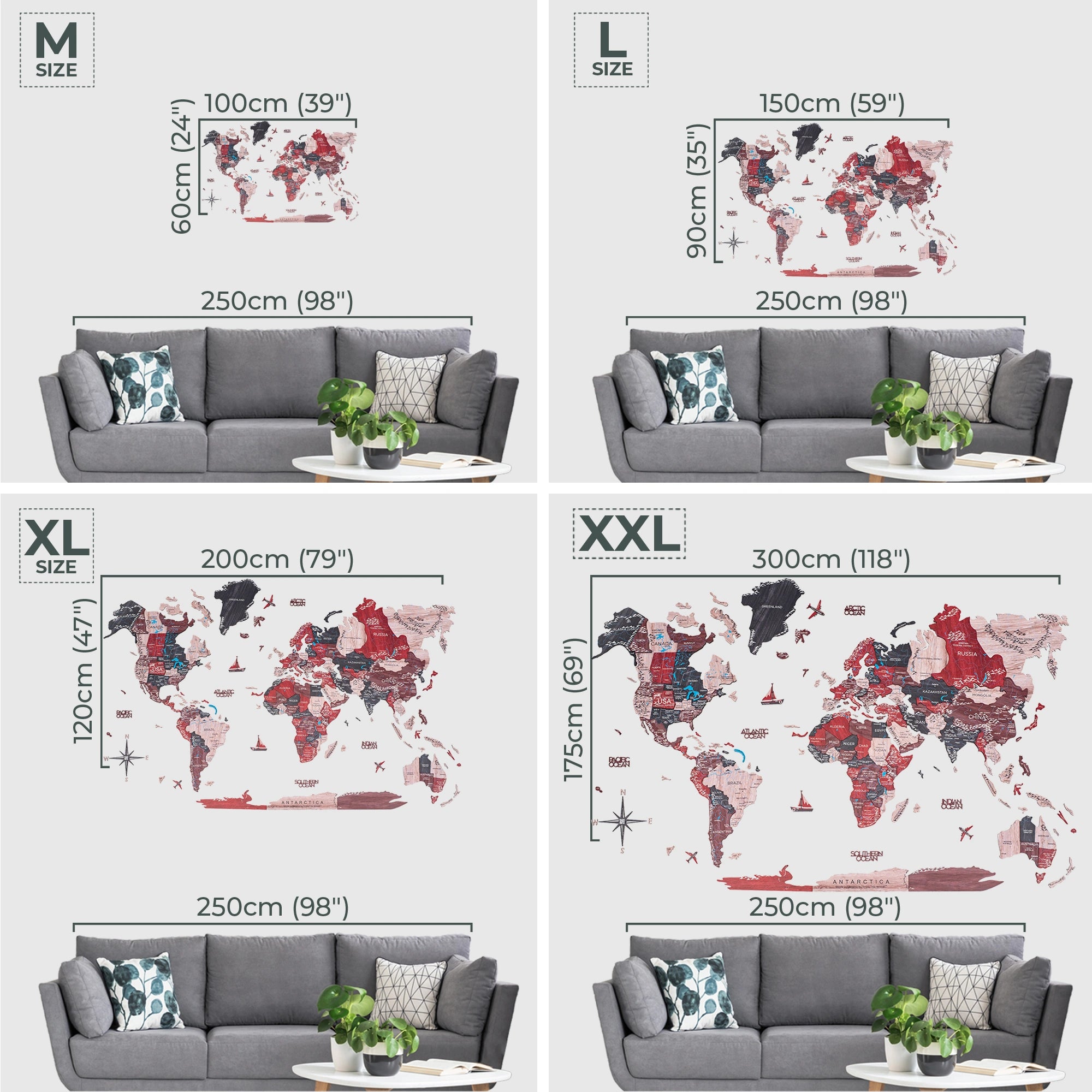 The assembly process for the red world map is a breeze, requiring no more than 1-2 hours of your time. Thanks to our detailed instructions and the included sticky tape, you'll complete the task more quickly than expected.