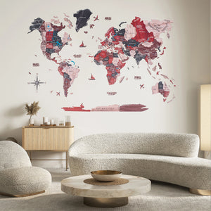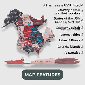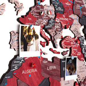 The world map painted on wood meticulously displays many details, including country names and borders, capital cities, urban hubs, rivers, tranquil lakes, and mountain ranges. Some smaller islands and nations have been left out, rendering them unsuitable for educational purposes. To unify your red world map, be sure to add these wooden sightseeings sticky pins to your cart.