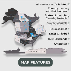 Please note that the map is not a geographical one, and some smaller countries and islands may be omitted. Each Map is unique, and shades may vary because it's made of natural wood.