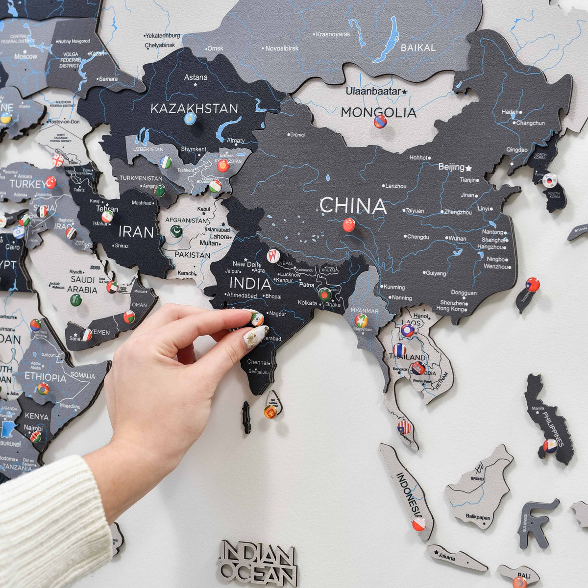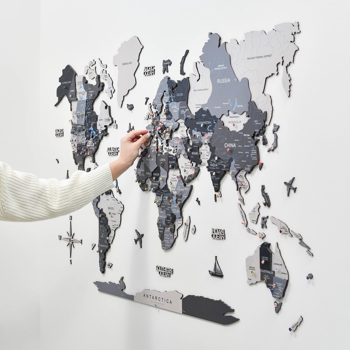 Looking for a sleek and modern addition to your home decor? Our Nordik 3D Wooden World Map is one of the bestsellers of 2023, featuring a sophisticated mix of black, blue, white, and grey colors that will add a touch of elegance and style to any room. This unique and eco-friendly map is perfect for adding some character to your walls and showcasing your love for travel.