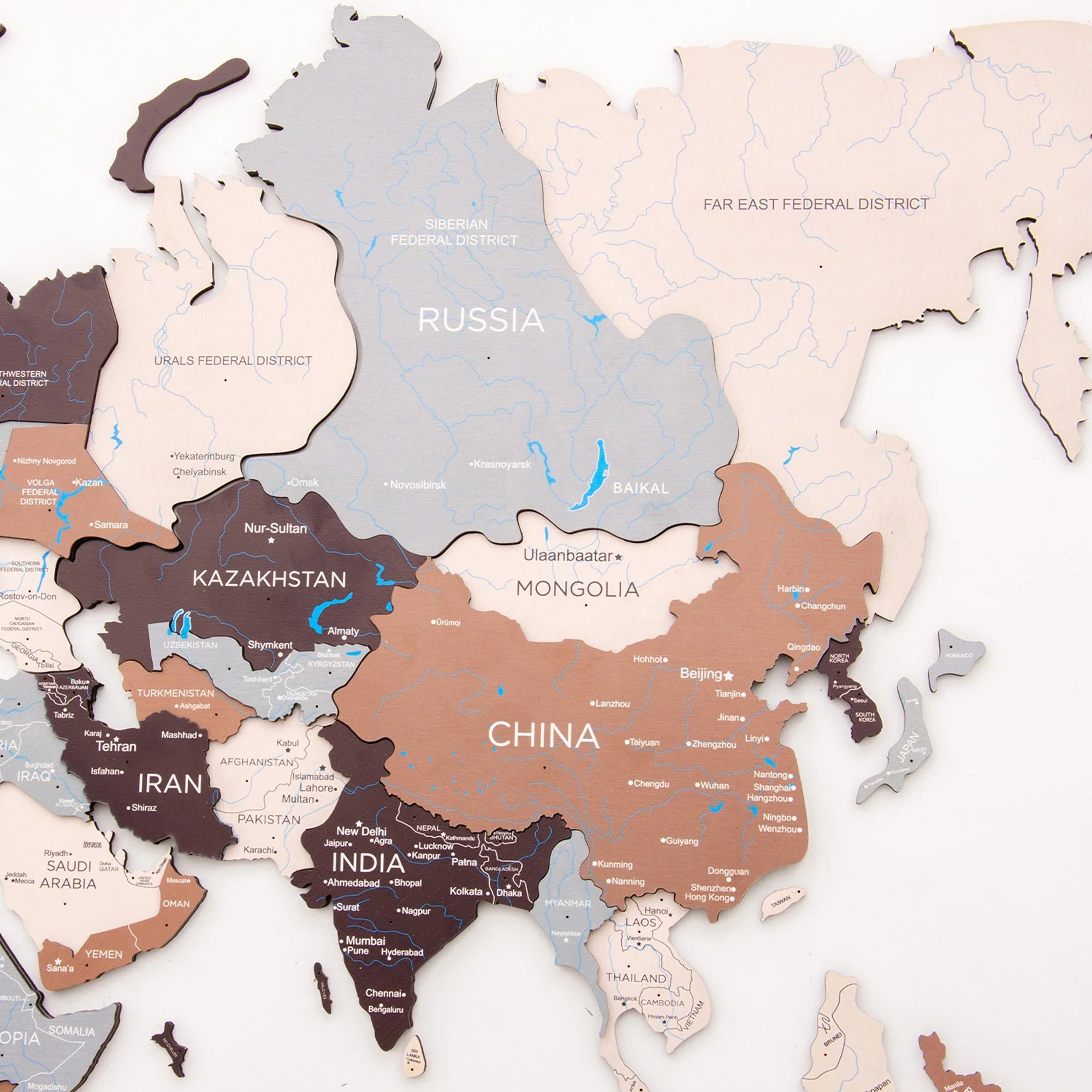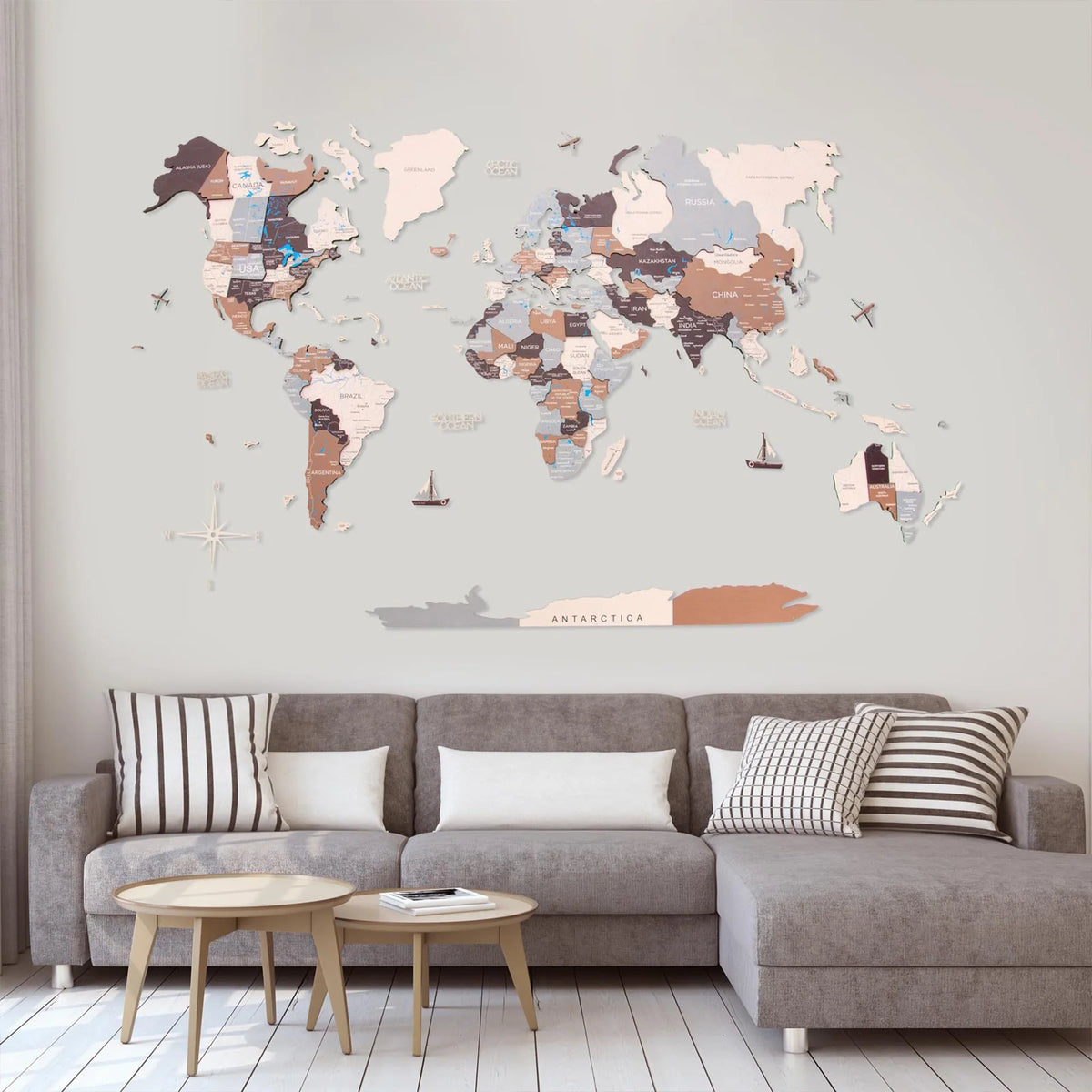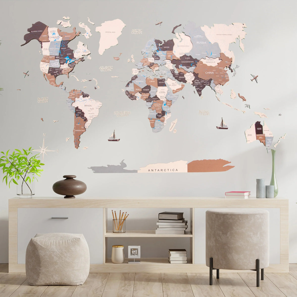 3D Wooden World Map - Suburbs 🌍🏡 | Elegant, Cozy, and Inviting Wall Décor