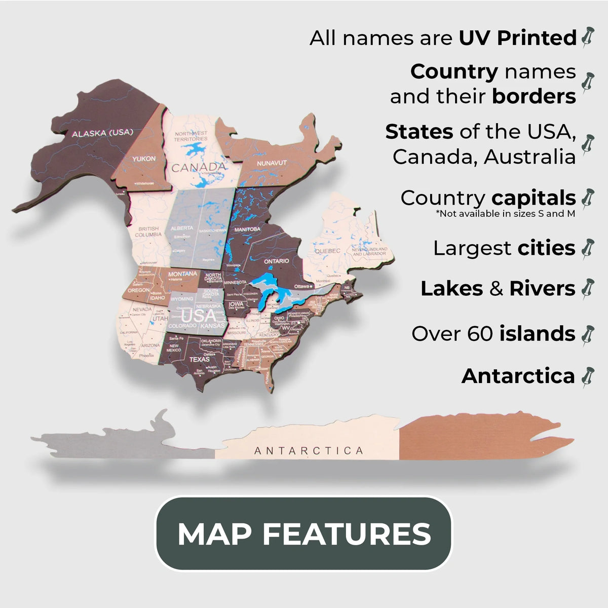 ✔ Intricate 3D Engraving – Detailed continents, borders, and cities, giving the map a unique, layered effect.